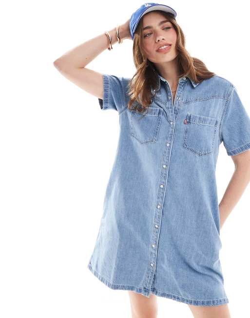 Levi's Louisa short sleeve denim shirt dress in mid blue