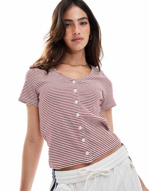 Levi's Muse button front vneck stripe t-shirt in red