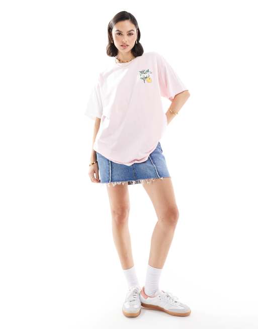Levi's oversized colour block t-shirt with lemon logo in pink