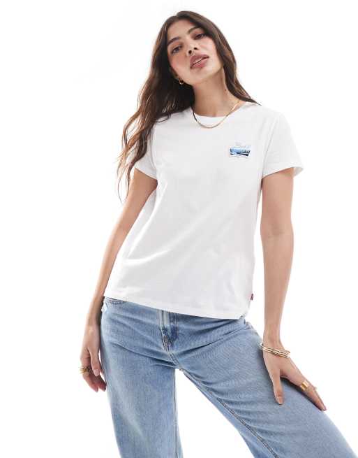 Levi's Perfect sunset embroid batwing badge logo t-shirt in white