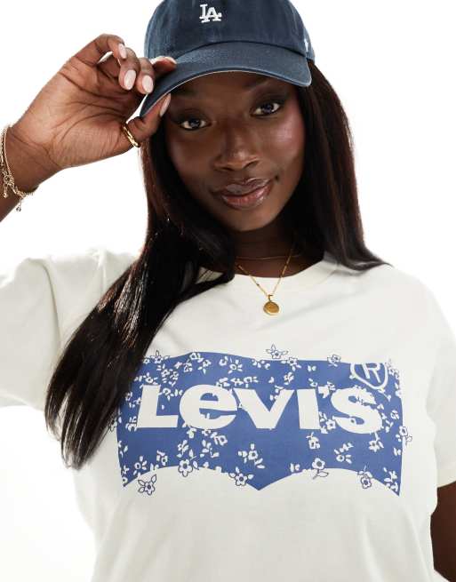 Levi's Plus t-shirt with chest batwing printed logo in cream