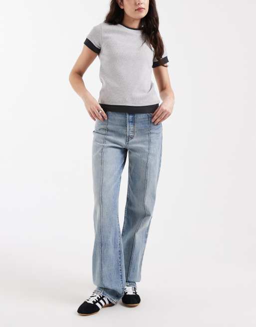 Levi's ribcage bells high rise flare seam front jeans in light blue