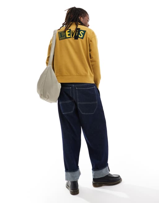 Levi's Skateboarding chenille patch back logo relaxed fit half zip sweatshirt in dark yellow