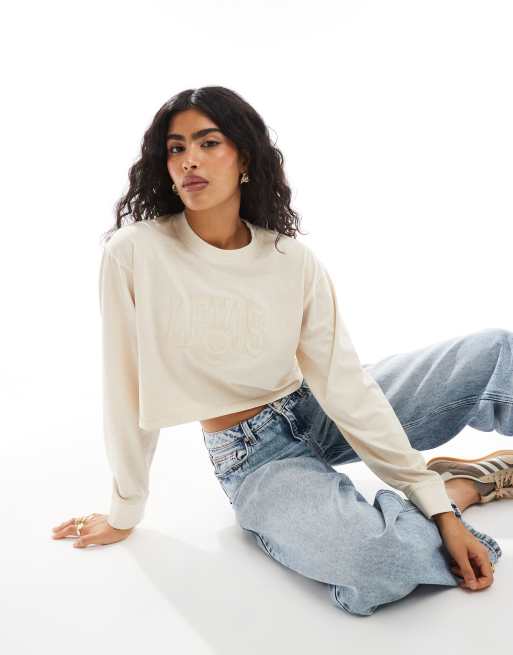 Levi's varsity tonal logo crop long sleeve t-shirt in beige