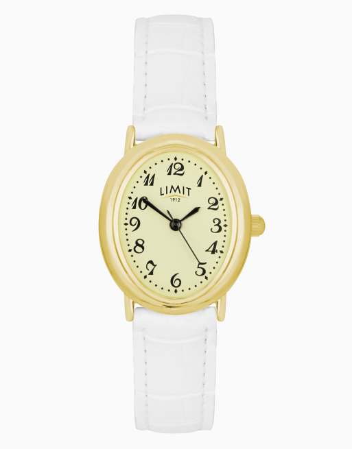 Limit 27mm oval gold watch in cream