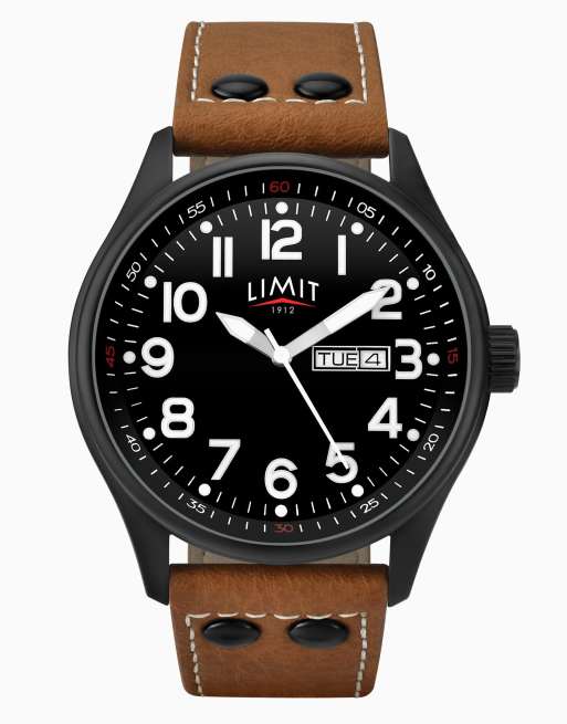 Limit 43mm mens round black analogue watch in brown