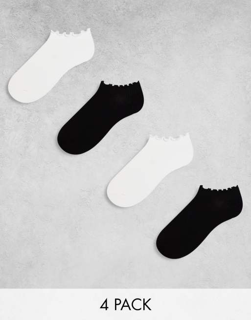 Lindex 4 pack lettuce edge trainer socks in black and white