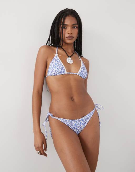 Lioness Gisele bow detail contrast trim halterneck bikini top co-ord in ditsy blue floral