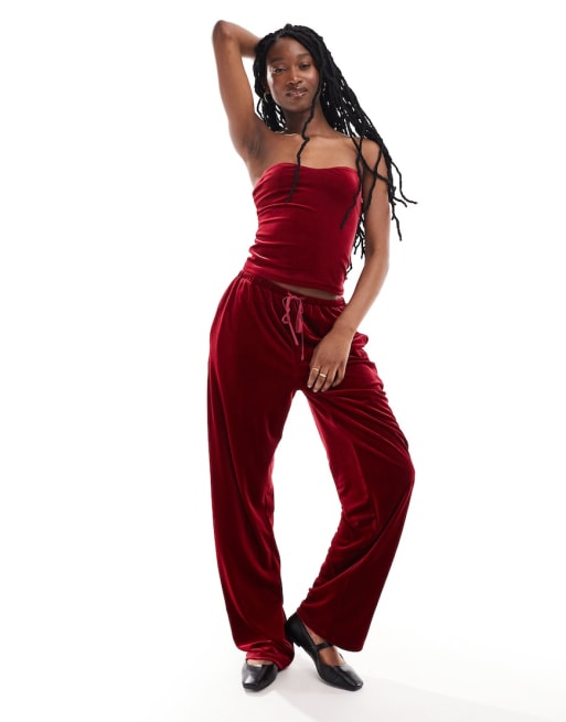 Lioness velour bandeau top and jogger co-ord in burgundy
