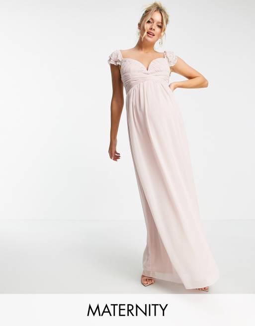 Little Mistress Maternity embellished flutter sleeve twist waist maxi dress in blush