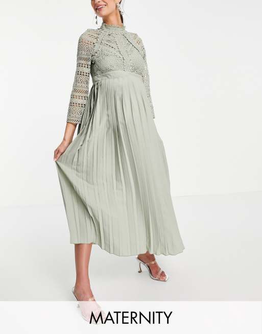 Little Mistress Maternity lace detail midaxi dress in sage green