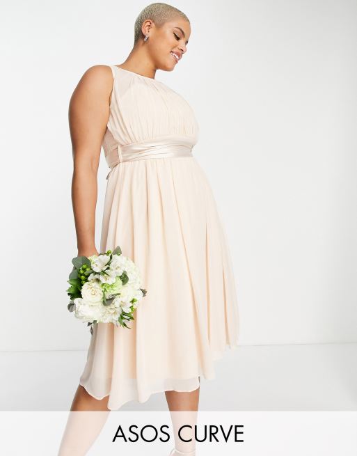 Little Mistress Plus Bridesmaid midi skater dress in blush