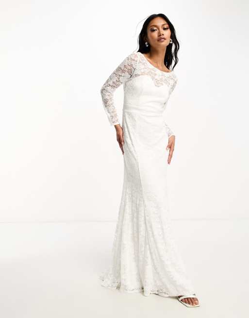 Little Mistress Bridal lace detail maxi dress with bow back in ivory