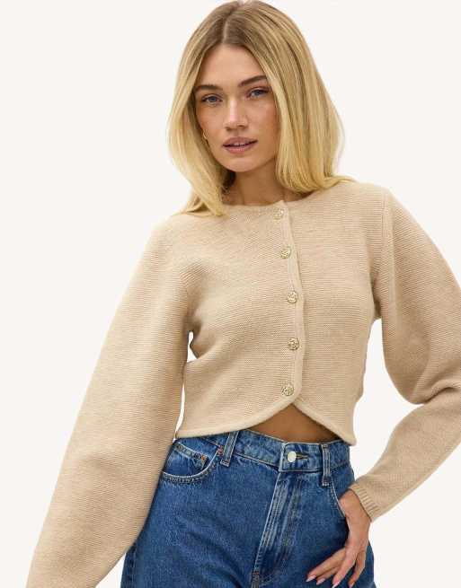 Loavies Constant thoughts cardigan with gold buttons in sand