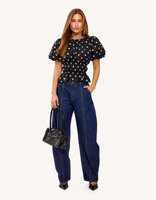 Loavies Vivid love cinched top with polka dots in black
