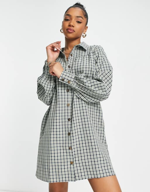 Lola May open collar shirt dress in check