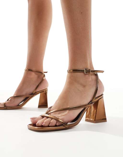 London Rebel Wide Fit Aria strappy mid block heeled sandals in bronze
