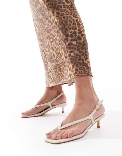 London Rebel Wide Fit strap detail thong heeled sandals in cream