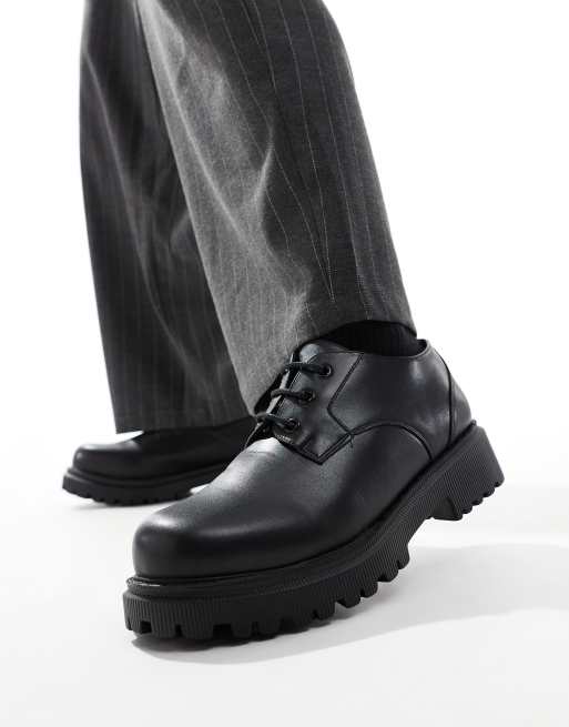 London Rebel X cleated sole chunky lace up shoes in matte black