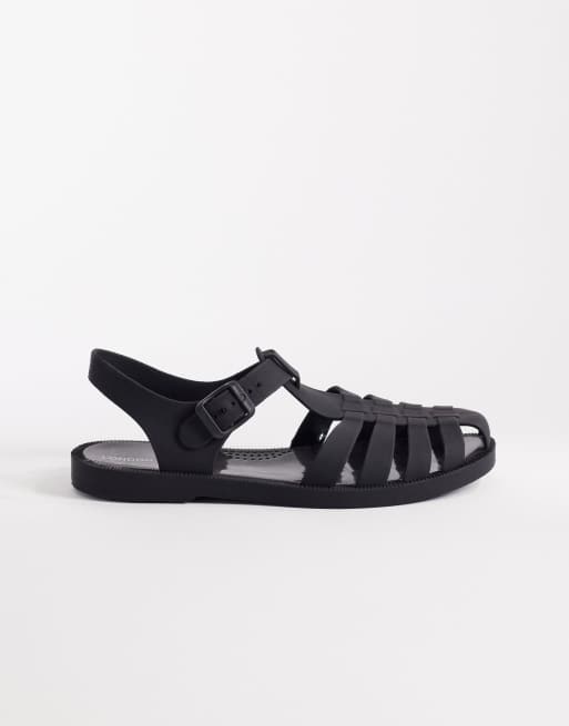 London Rebel Abby caged flat sandal in black matt