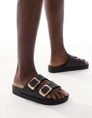 London Rebel Andi buckle sandals in black