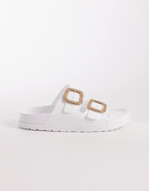 London Rebel Astra double buckle sandals in white
