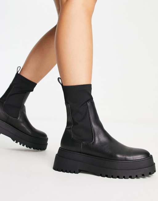 London Rebel chunky sock boots in black