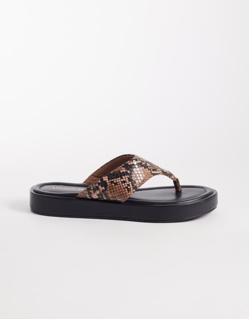 London Rebel Mira flatform thong sandals in snake