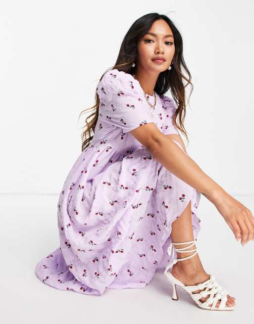 Lost Ink midi smock dress with tie front in pretty floral
