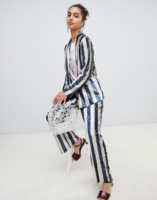 Lost Ink relaxed blazer & trouser in sequin stripe co-ord