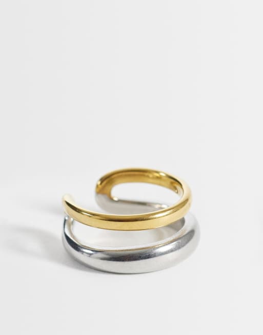 Lost Souls mixed metal Double ring in 18ct gold plated stainless steel