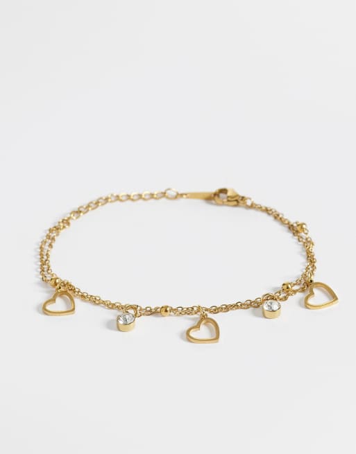 Lost Souls multi hearts charm bracelet in 18ct gold plated stainless steel