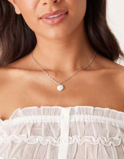 Lost Souls stainless steel flat pearl pendant necklace in silver