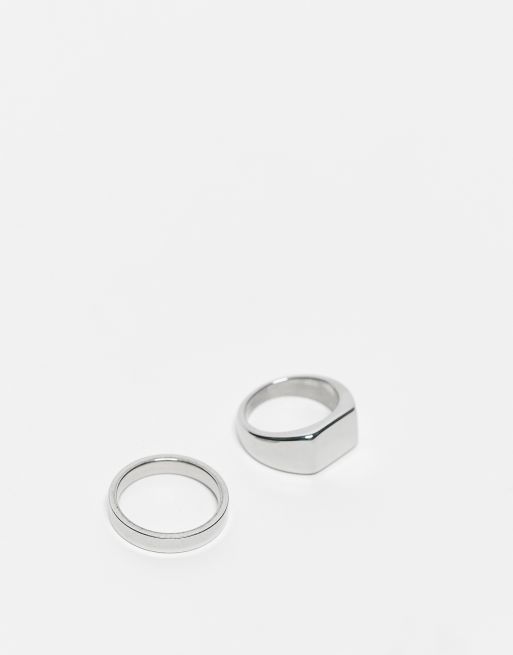 Lost Souls stainless steel pack of 2 classic rings in silver