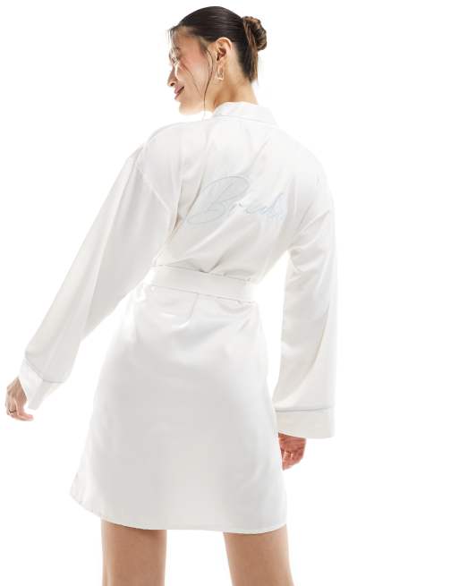Loungeable Bride satin kimono in ivory