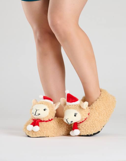 Loungeable Christmas llama slipper in beige