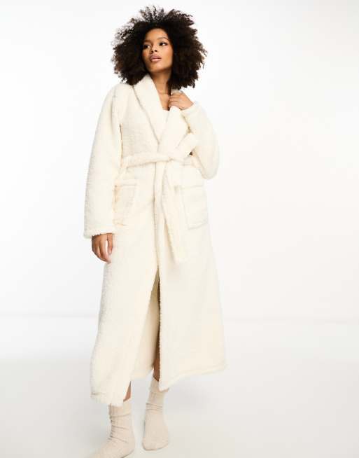 Loungeable cosy borg collar maxi dressing gown in cream