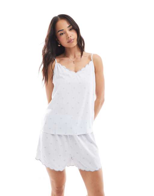 Loungeable Heart stripe soft cami short set in blue