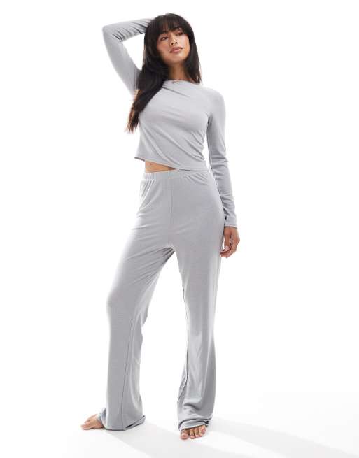 Loungeable Long sleeve top & flare legging lounge set in silver