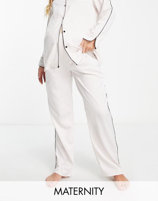 Loungeable Maternity mix and match satin pyjama trousers in cream with black binding