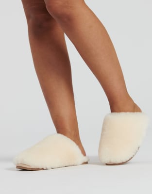 Loungeable Real sheepskin fluffy mules in cream