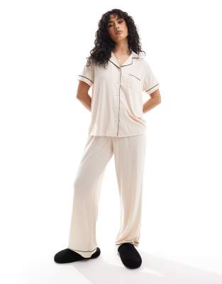 Loungeable rib jersey short sleeve and long pant pyjama in cream