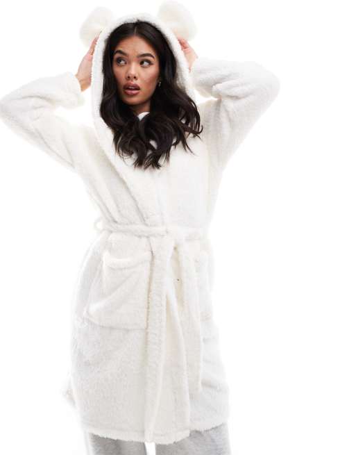 Loungeable sherpa hooded ears mini robe in cream