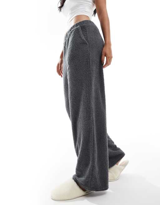 Loungeable Soft fuzzy wide leg pants in charcoal