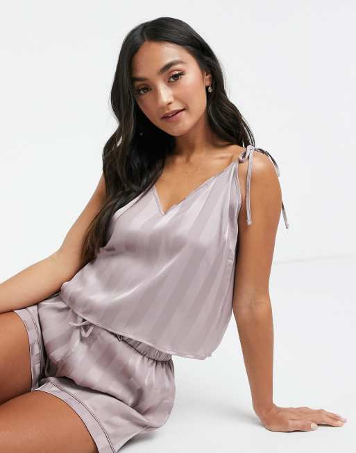 Loungeable stripe jacquard satin cami top in mink
