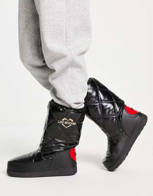Love Moschino quilted high gloss Snow boots in black