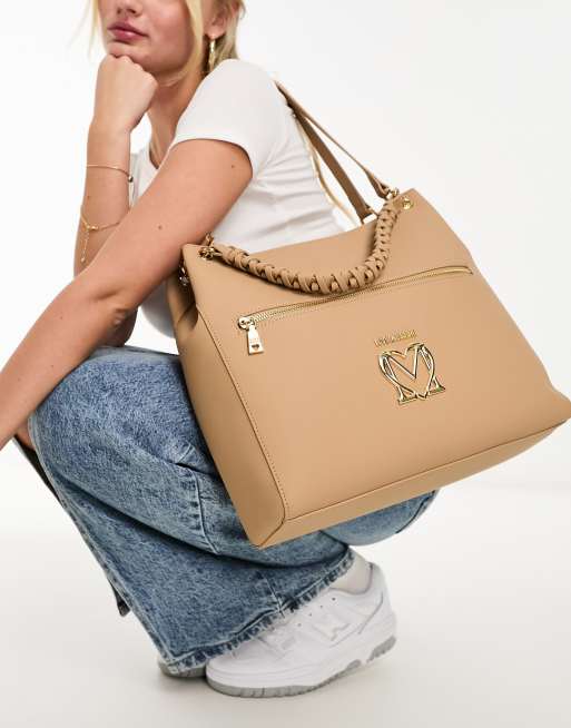 Love Moschino twist handle structured tote bag in beige