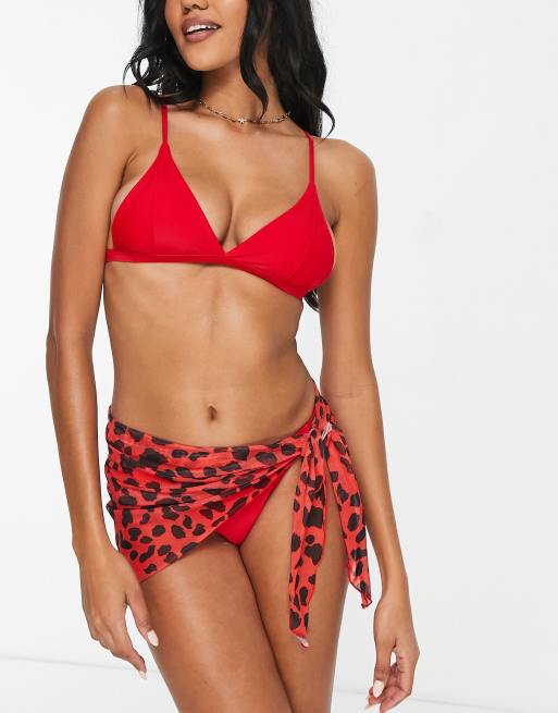Love & Other Things 3 piece triangle bikini and sarong set in red leopard