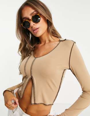 Love & Other Things seam panelled top in camel with brown stitching