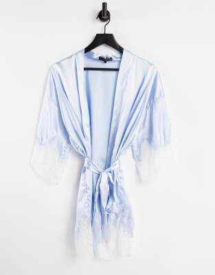Love & Other Things stain robe with lace trim in pale blue